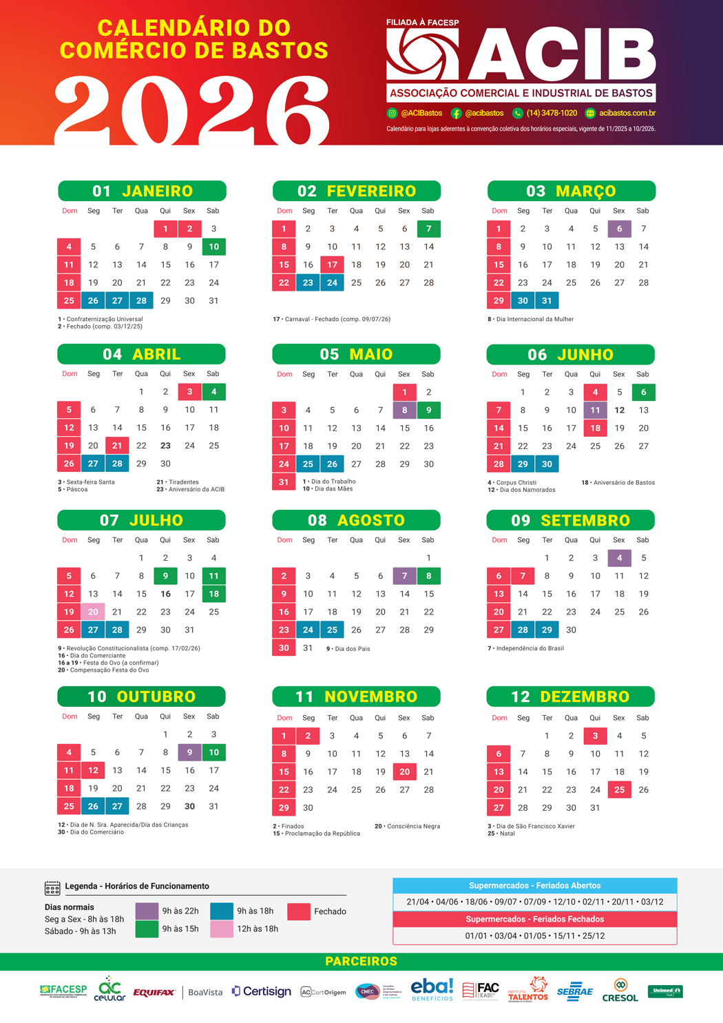 Para acompanhar o horário do Comércio, acesse nossas redes sociais: